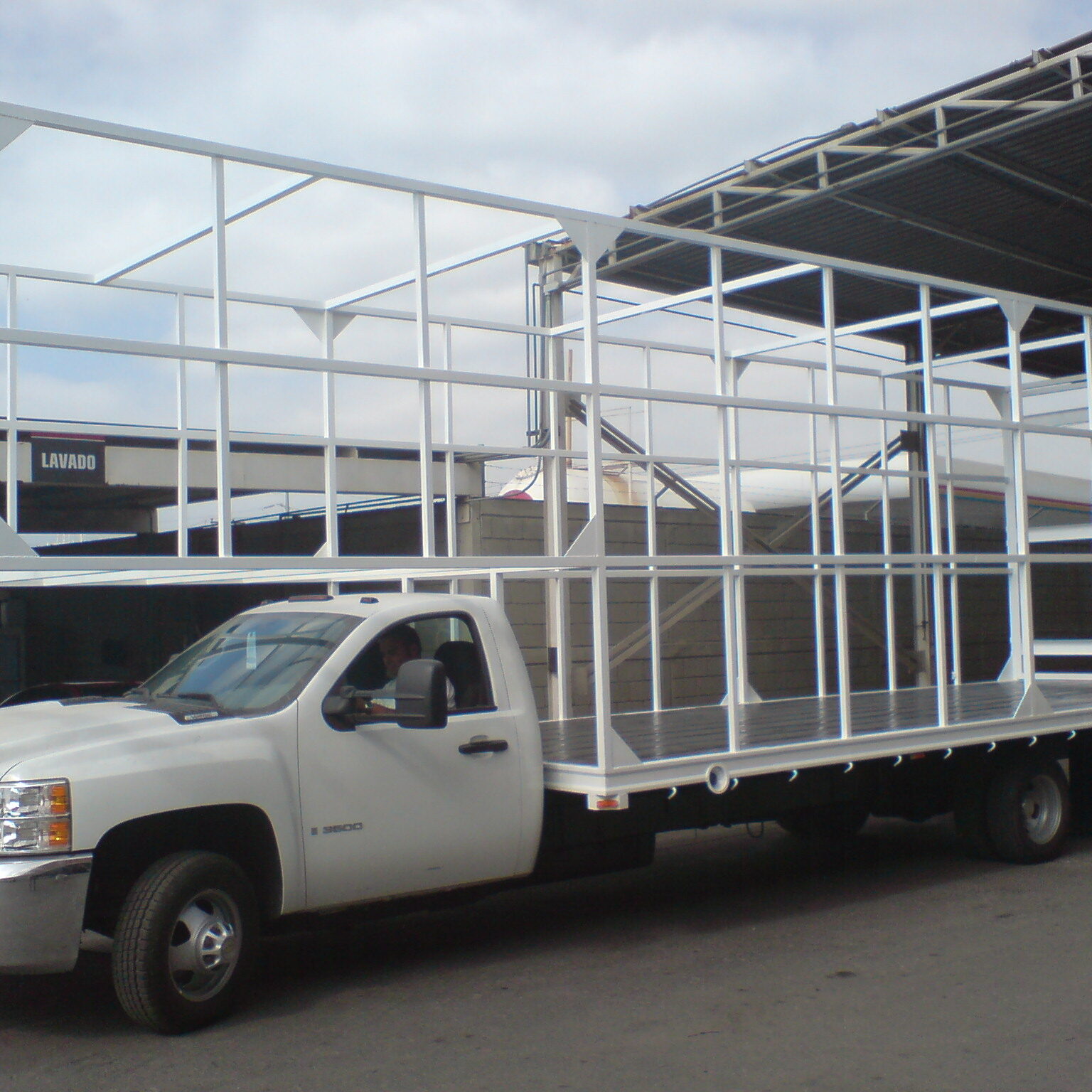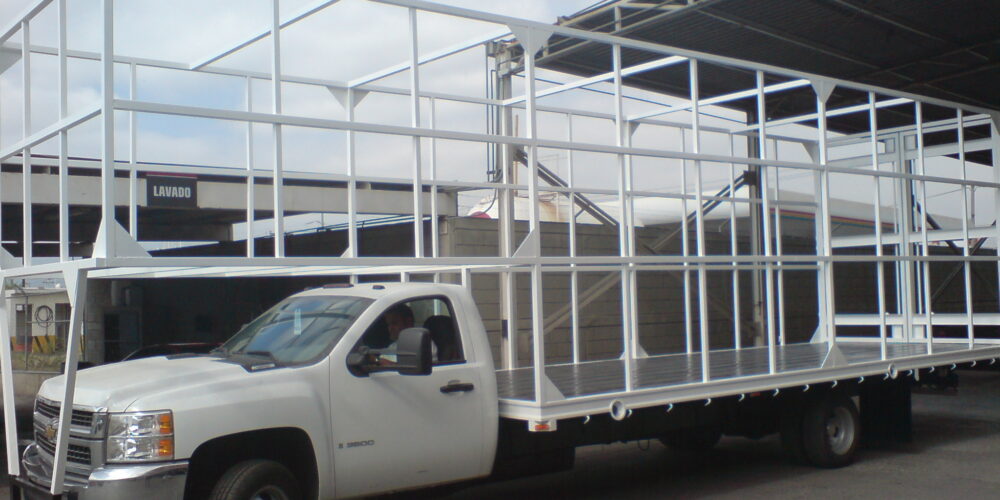 Las estructuras son aditamentos metálicos diseñados para instalarse sobre plataformas o redilas, ampliando su funcionalidad y adaptándose a necesidades específicas de transporte o uso. Estas estructuras son fabricadas con acero de diferentes calibres, lo que garantiza durabilidad y capacidad para soportar diversas cargas.
